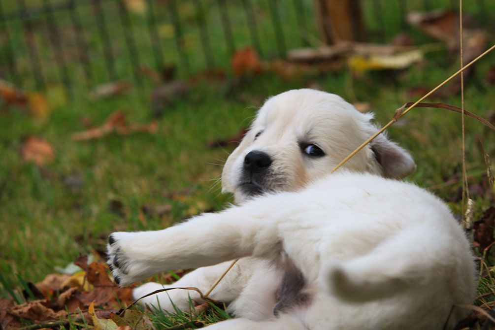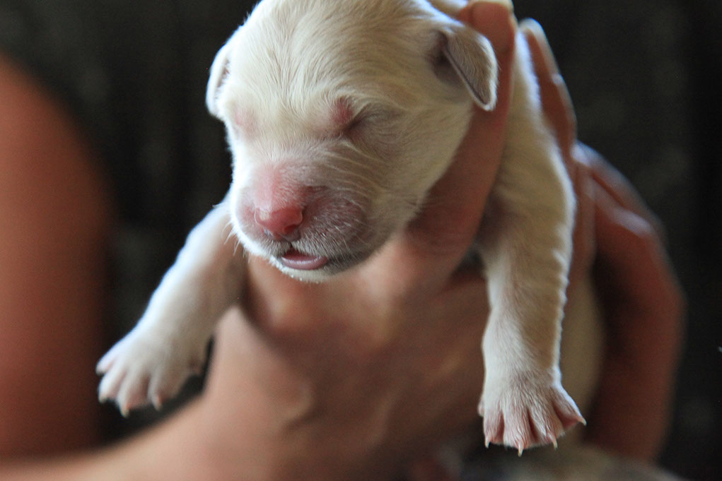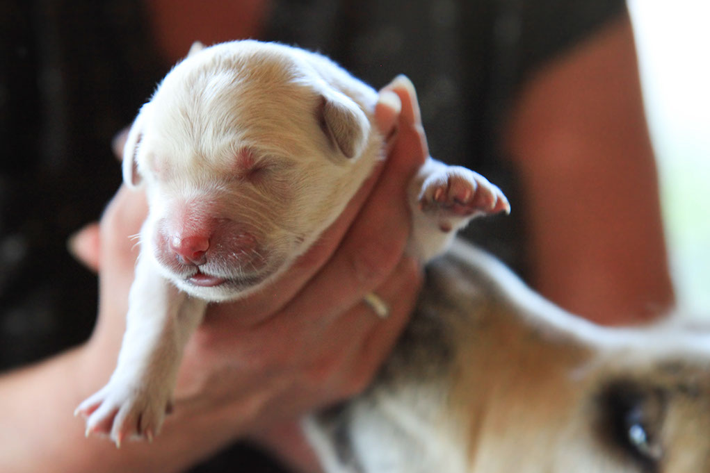 Die Wurfkiste steht bei uns im Wohnzimmer, sodass die Welpen immer unter Aufsicht sind und gleich das alltägliche Leben kennenlernen. Nach ca.4 Wochen dürfen sie in einen schönen hellen Raum im Erdgeschoß ziehen, wo sie direkt in ihren „ Welpengarten“ können. Mit 8 Wochen sind sie dann von uns liebevoll vorbereitet zu ihren neuen Besitzern zu gehen.